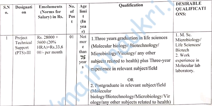 - Total vacancies – 1 post.