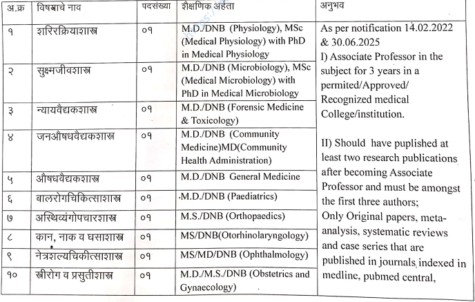 अधिष्ठाता, शासकीय वैदयकीय महाविदयालय, सिंधुदुर्ग यांनी प्रसिद्ध केलेल्या जाहिराती नुसार येथे चिकित्सालयीन/अचिकित्सालयीन सहयोगी प्राध्यापक पदभरतीसाठी महाराष्ट्रातील रहिवासी असलेल्या भारतीय नागरिकांकडून विहित नमुन्यातील ऑफलाईन अर्ज मागवून दि. ४/१२/२०२५ रोजी मुलाखत आयोजित केली आहे. या भरती अंतर्गत एकूण १७ जागा आहेत. अधिकृत वेबसाईट आणि PDF जाहिरात लिंक खाली दिलेली आहे. “माझी नोकरी” या लिंक वरून टेलिग्राम चॅनल लगेच जॉईन करा.