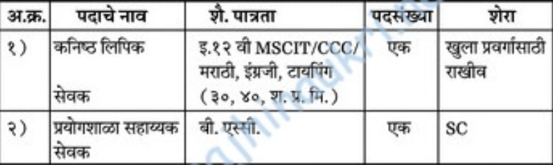 | शैक्षणिक पात्रता आणि अनुभव | शैक्षणिक पात्रतेकरिता तक्ता पहा/जाहिरात बघावी. |