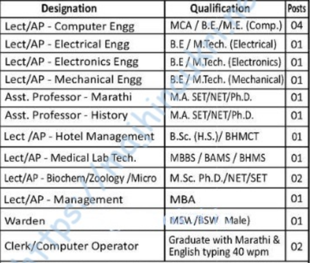 | शैक्षणिक पात्रता आणि अनुभव | (शैक्षणिक पात्रताकरिता तक्ता पहा/जाहिरात बघावी) –![]() |