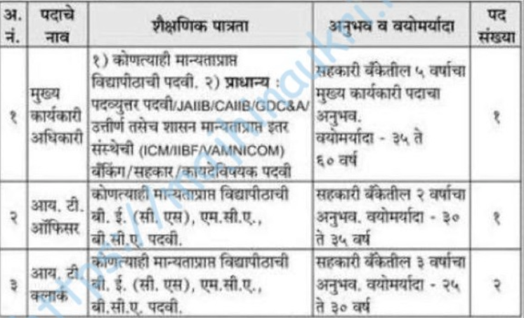 | या पदांसाठी भरती | १) लिपिक २) शाखाधिकारी ३) माहिती तंत्रज्ञान अभियंता |