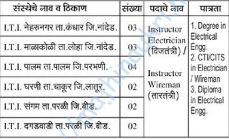 - Recruitment place – Nanded, Parbhani, Latur & Beed Districts.