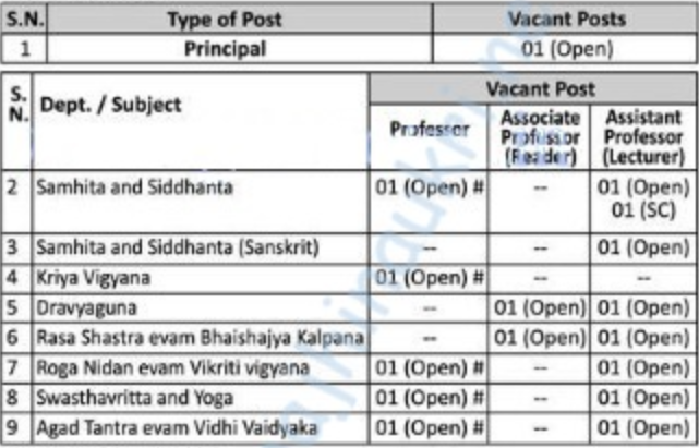 - Posts’ name – 1) Principal 2) Associate Professor 3) Assistant Professor.