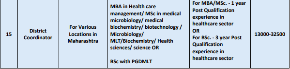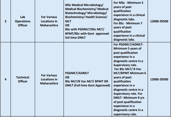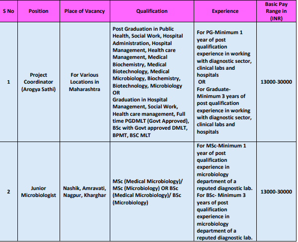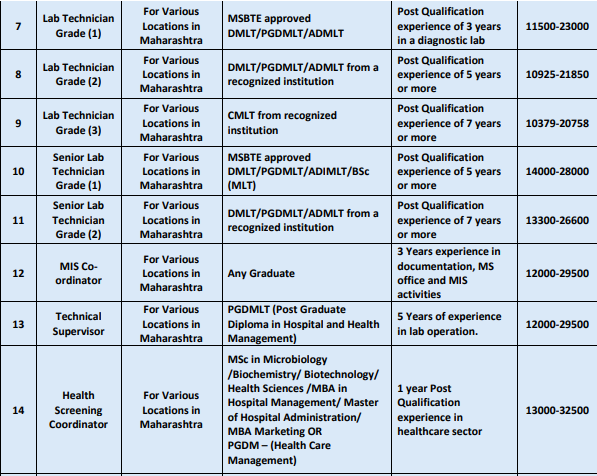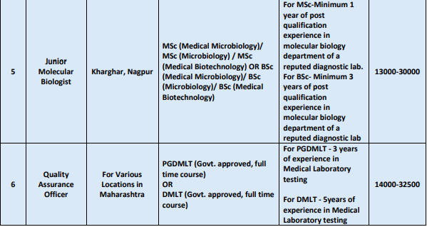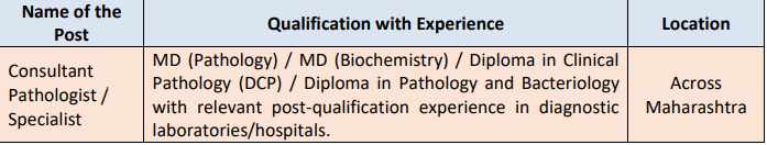 | अर्ज पद्धती | ऑनलाईन – कन्सल्टन्ट पॅथॉलॉजिस्टस/विशेषज्ञ आणि ऑफलाईन – इतर. |