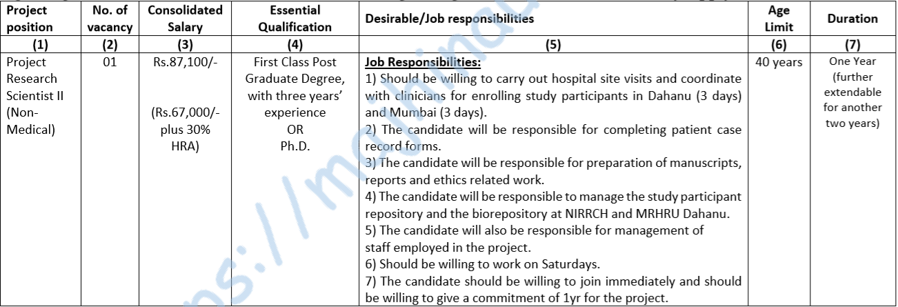 • प्रकल्प संशोधन वैज्ञानिक-II (बिगर-वैद्यकीय)