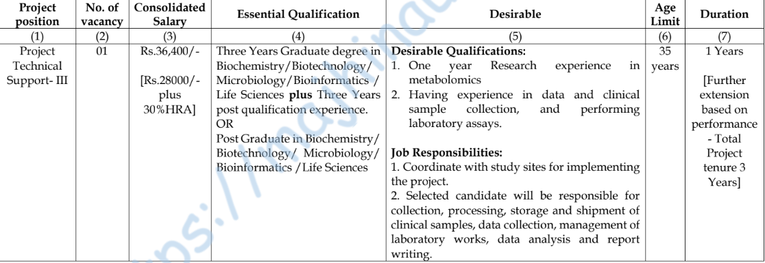 - Project Technical Support-III – Rs. 36,400/- pm.