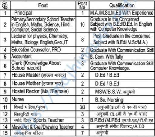 - मुलाखतीचे ठिकाण – आयडियल इंग्लिश मिडीयम स्कूल, दादावाडी, श्रीरामनगर, जळगाव – ४२५००१.