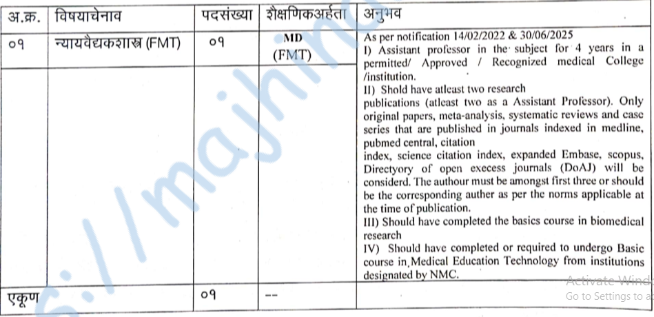 - पदांचा तपशील, अटी आणि शर्ती, निवड प्रक्रिया, पात्रता निकष, अर्जासोबत जोडावयाची आवश्यक कागदपत्रे, अर्ज प्रक्रिया यांच्या विस्तृत माहितीसाठी आणि इतर माहितीसाठी PDF पहा आणि https://www.med-edu.in/ येथे भेट दया.