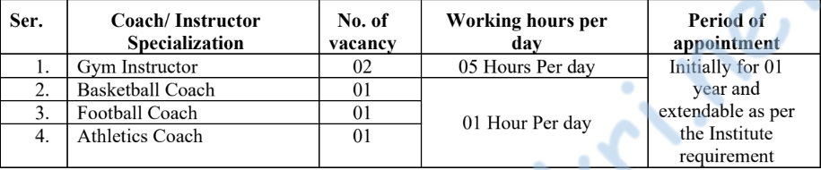 या पदांसाठी भरती१) फुटबॉल कोच २) बास्केटबॉल कोच ३) अथलेटिक्स कोच ४) जिम इन्स्ट्रक्टर