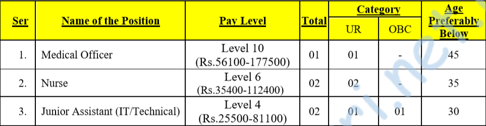 - Posts Name – 1) Medical Officer 2) Nurse 3) Junior Assistant (IT/Technical).