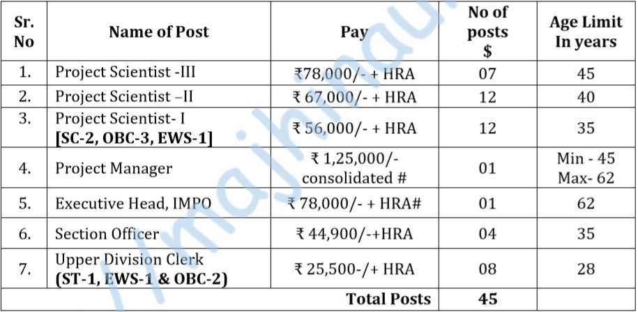 | या पदांसाठी भरती | १) प्रकल्प वैज्ञानिक-III २) प्रकल्प वैज्ञानिक-II ३) प्रकल्प वैज्ञानिक-I ४) प्रकल्प सहयोगी-I ५) प्रकल्प सहयोगी-II ६) वरिष्ठ प्रकल्प सहयोगी ७) प्रकल्प व्यवस्थापक ८) प्रकल्प सल्लागार |