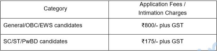 • अर्ज शुल्क – (अर्ज शुल्क भरणा प्रक्रियेविषयी सविस्तर माहितीसाठी तक्ता पहा/PDF/वेबसाईट पहा) –