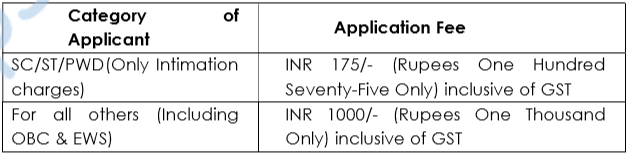 - Application fee – (For detail procedure of application fee payment see table/refer PDF/visit website) –