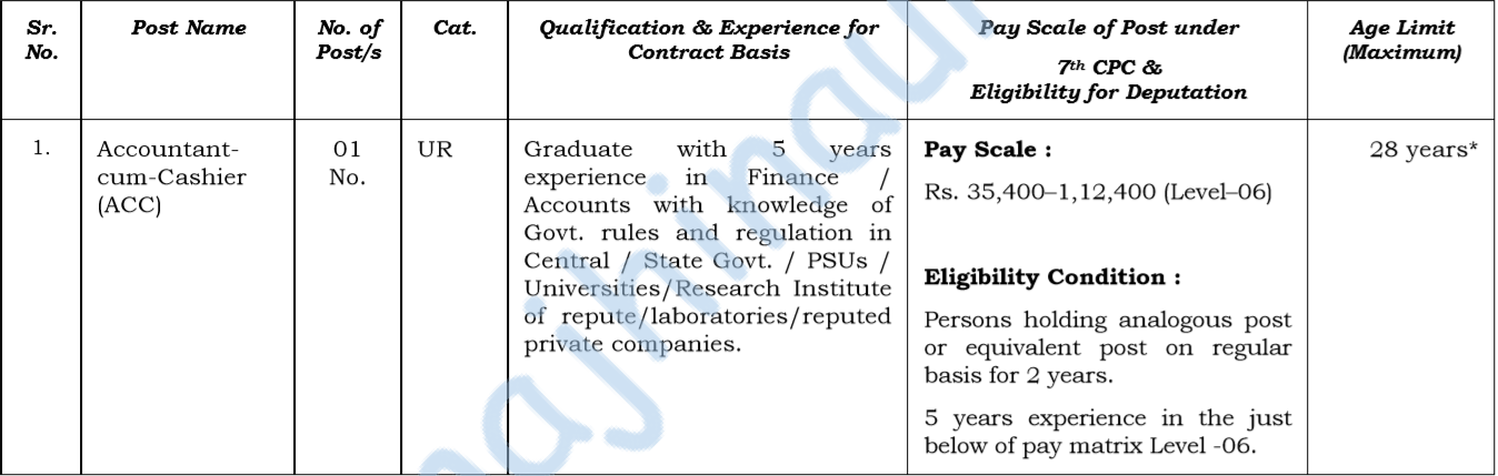 - Posts’ name – (See table/Ref. PDF/Visit website) –