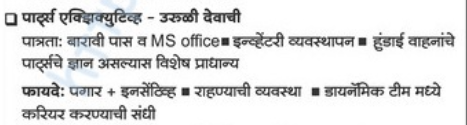 - Recruitment place – Nagpur/Chandrapur/Gondia/Gadchiroli.