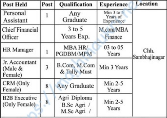 Jaikisan Agrotech Recruitment 2025 – Jaikisan Agrotech India Private Limited invites Online applications to fill up various Administrative & Executive posts. There are total 21 vacancies. The lob location is Chhatrapati Sambhajinagar. The Official website & PDF/Advertise is given below.