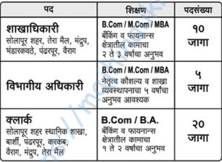 - Address for application – Jagjivandas Complex, 940, North Sadar Bajar, Near Gharud Building, Solapur – 413003.
