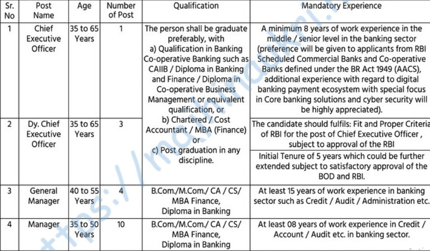 या पदांसाठी भरती१) महाव्यवस्थापक २) मुख्य अनुपालन अधिकारी ३) मुख्य अधिकारी