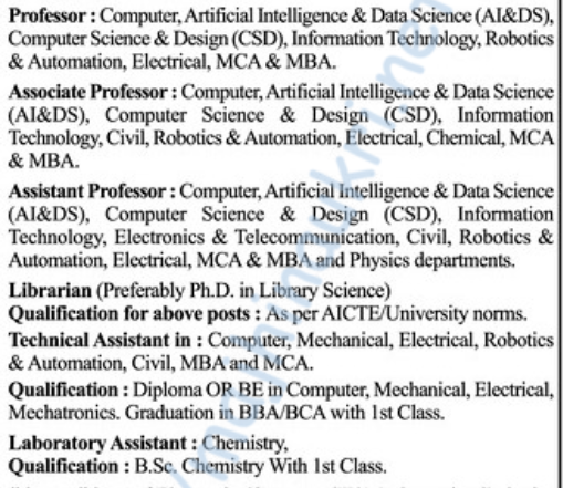 के. के. वाघ शैक्षणिक संस्था, नाशिक यांनी प्रसिद्द केलेल्या जाहिराती नुसार के. के. वाघ इन्स्टिट्यूट ऑफ इंजिनिअरिंग एज्युकेशन अँड रिसर्च, नाशिक येथे प्राध्यापक, सहयोगी प्राध्यापक, सहाय्यक प्राध्यापक, तांत्रिक सहाय्यक, प्रयोगशाळा सहाय्यक आणि ग्रंथपाल पदभरतीसाठी मुलाखतीस उपस्थित राहू न शकणाऱ्या उमेदवारांसाठी दि. ८/१२/२०२५ पर्यंत ऑनलाईन अर्ज मागवण्यात येत आहेत आणि दि. १/१२/२०२५ रोजी मुलाखत आयोजित केली आहे. अधिकृत वेबसाईट आणि PDF जाहिरात लिंक खाली दिलेली आहे. “माझी नोकरी” या लिंक वरून टेलिग्राम चॅनल लगेच जॉईन करा