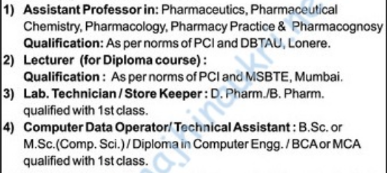 के. के. वाघ इन्स्टिट्यूट ऑफ फार्मसी, नाशिक येथे मोठया पदावर नोकरीची संधी