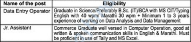 | शैक्षणिक पात्रता आणि अनुभव | शैक्षणिक पात्रताकरिता तक्ता पहा/जाहिरात बघावी. |