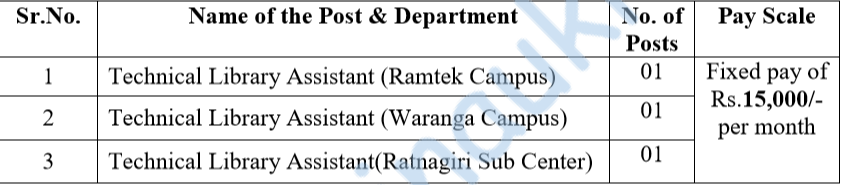 | या पदांसाठी भरती | तांत्रिक ग्रंथालय सहाय्यक ![]() |