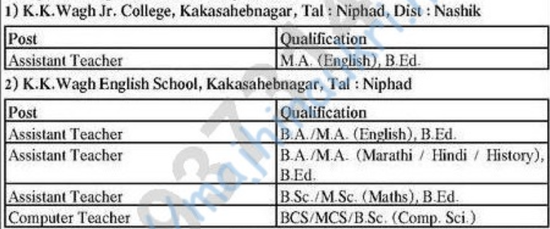 - मुलाखतीचे ठिकाण – सचिव, के. के. वाघ एज्युकेशन सोसायटी, हिराबाई हरिदास विदयानगरी, अमृतधाम, पंचवटी, नाशिक – ४२२००६.