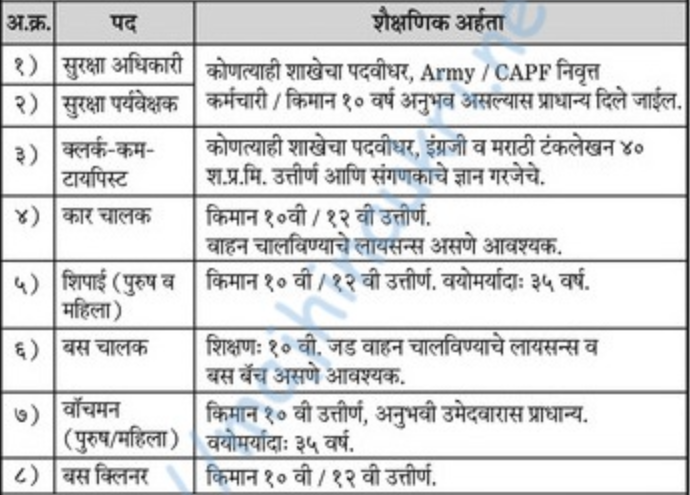 | शैक्षणिक पात्रता आणि अनुभव | शैक्षणिक पात्रताकरिता तक्ता पहा/जाहिरात बघावी. |