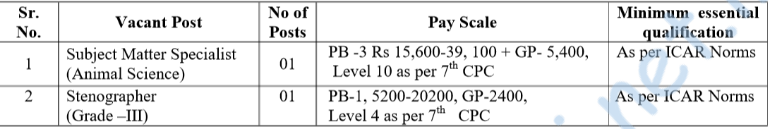 KVK Baramati Dist. Pune Recruitment 2025 – Krishi Vigyan Kendra Baramati, Dist. Pune invites Offline applications in prescribed format for the posts of Subject Matter Specialist (Animal Science) & Stenographer (Gr. III). There are 2 posts. The job location is Baramati, Dist. Pune. The Official website & PDF/Advertise is given below.