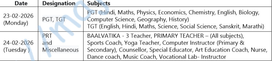 - For all further announcements/details/any revision/corrigendum/updates about said recruitment visit website – https://no1ahmednagar.kvs.ac.in/ & www.kvsangathan.nic.in regularly.