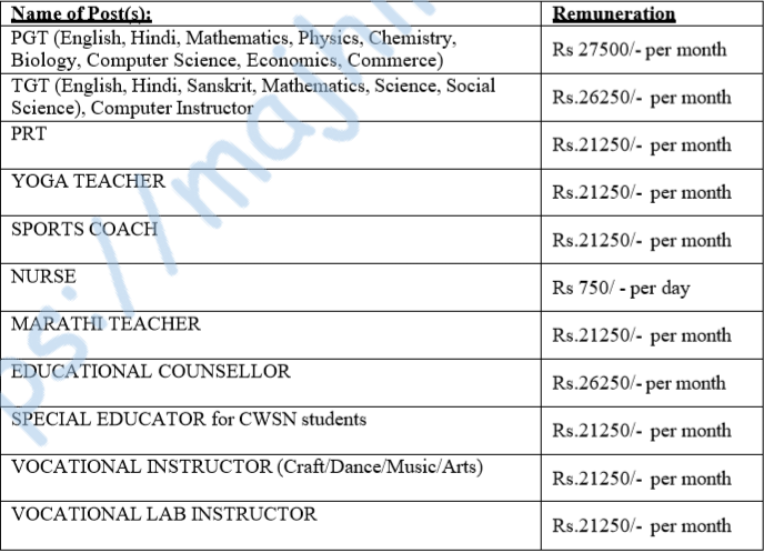 - पदांसाठीचे तपशील, अटी आणि शर्ती, विहित नमुना अर्ज, इतर सविस्तर PDF पहा https://no1ahmednagar.kvs.ac.in/ आणि www.kvsangathan.nic.in येथे वेळोवेळी भेट दया.
