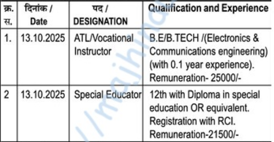 - ATL/Vocational instructor – Rs. 25,000/- pm.