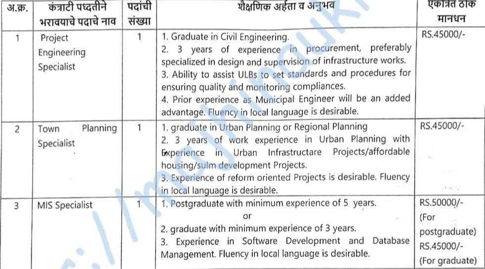 - मुलाखतीचे ठिकाण – मुख्य कार्यालय, लातूर महानगरपालिका, मेन रोड, लातूर.