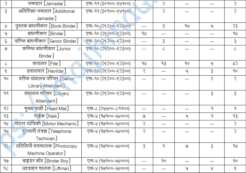 - Posts’ name – (See table/Ref. PDF/Visit website) –
