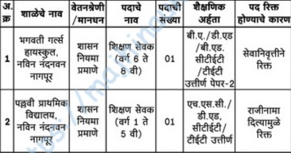 • अर्जाचा पत्ता – ज्योतिबा माध्यमिक आणि उच्च माध्यमिक विद्यालय, नवीन नंदनवन, हसनबाग रोड, पाण्याच्या टाकीजवळ, नागपूर – ४४००२४.