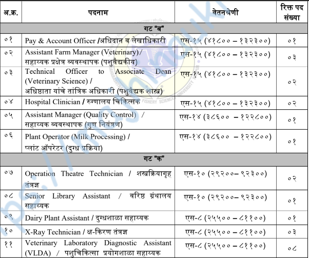 महाराष्ट्र पशु व मत्स्य विज्ञान विदयापीठ, नागपूर भरती २०२६