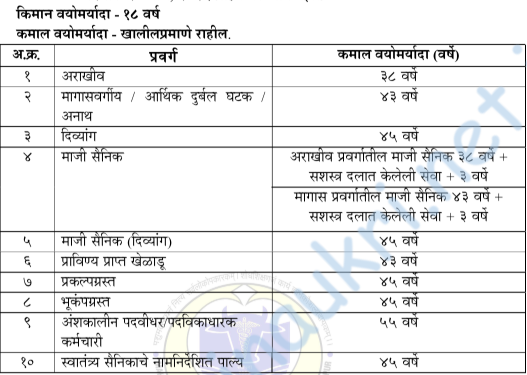 • वयोमर्यादा – (तक्ता पहा/PDF/वेबसाईट बघावी) –