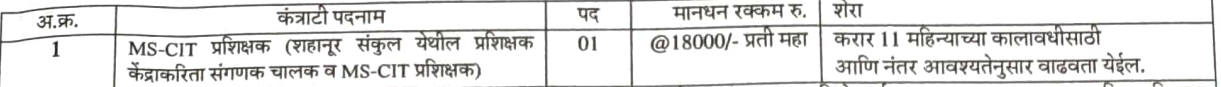 - Post’s Name – 1) MS-CIT Teacher 2) MSTrIPES Data Entry Operator 3) ESM.