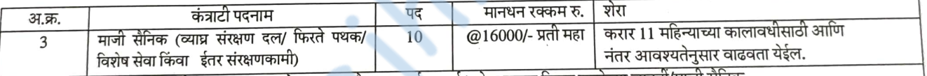 - पदांचा तपशील, अटी आणि शर्ती, विहित नमुना अर्ज, अर्जासोबत जोडावयाची आवश्यक कागदपत्रे, अर्ज प्रक्रिया, निवड प्रक्रिया, आरक्षण, पात्रता निकष यांच्या विस्तृत माहितीसाठी, इतर माहितीसाठी PDF पहा आणि https://mahaforest.gov.in/.येथे भेट दया.