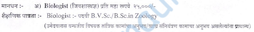 - For all the details of post, terms & conditions, application procedure, documents required along with application form, experience, selection procedure refer PDF/visit https://mahaforest.gov.in/or Wadsa Forest Department Office Notice Board.
