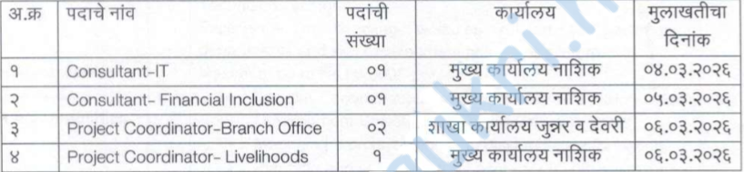 Mahashabari Recruitment 2026 – Shabari Adivasi Vitta Va Vikas Mahamandal Maryadit, Nashik & has arranged interview on date 4/3/2026, 5/3/2026 & 6/3/2026 for the various posts of Consultant & Project Co-ordinator in various disciplines at Skill Development & Livelihood Cells. There are total 5 vacancies. The job location is Nashik. The Official website & PDF/Advertise is given below.