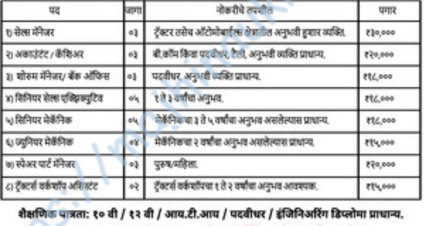 महिंद्रा ट्रॅक्टर डीलर्स ओम साई ऑटोमोबाईल्स, जळगाव भरती २०२५ | |