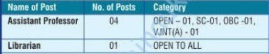 - Name of the posts – Assistant Professor