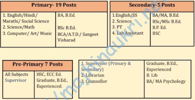 - For all the details of each post, terms & conditions, application procedure, documents required along with application form, prescribed format application form, experience, selection procedure please refer PDF/visit website – https://publicschoolkalamboli.mespune.in/.