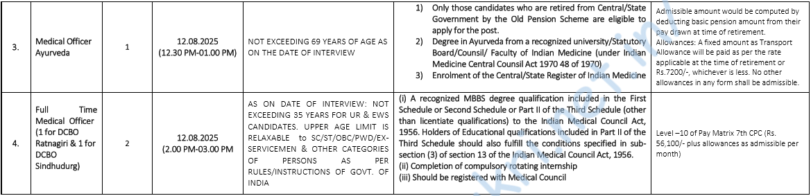 या पदांसाठी भरतीअर्धवेळ विशेषज्ञ/वरिष्ठ निवासी/पूर्णवेळ वैदयकीय अधिकारी आणि आयुर्वेदिक वैदयकीय अधिकारी