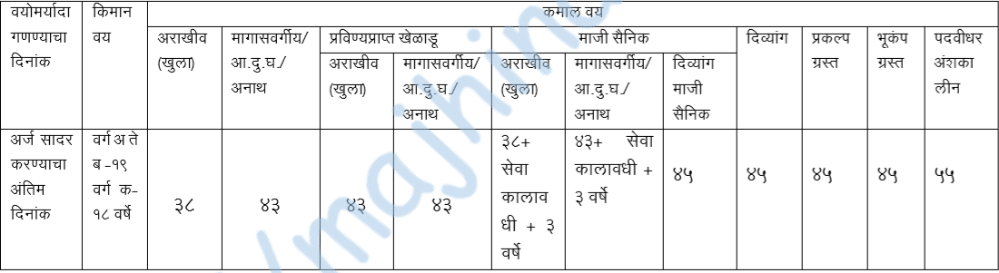 • वयोमर्यादा – (तक्ता पहा/PDF/वेबसाईट बघावी) –