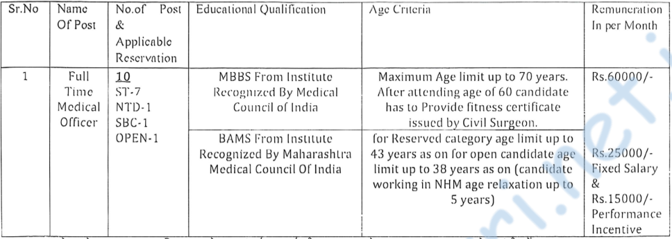 | या पदांसाठी भरती | पूर्णवेळ वैदयकीय अधिकारी |