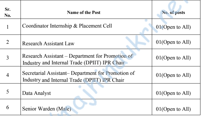 - Secretarial Assistant – Department for Promotion of Industry and Internal Trade (DPIIT) IPR Chair – Rs. 15,000/- pm.