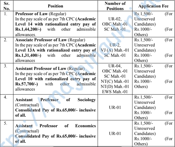 - For detail descriptions of posts, terms & conditions, application procedure, eligibility criteria, experience, selection procedure, other information ref. PDF/ visit website – https://www.nlunagpur.ac.in/.