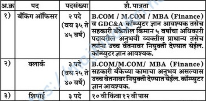 - Posts’ name – 1) Banking Officer 2) Clerk 3) Peon